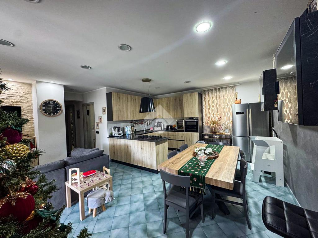 La zona giorno è caratterizzata da un ampio open space che unisce cucina e soggiorno, creando uno spazio accogliente e luminoso.