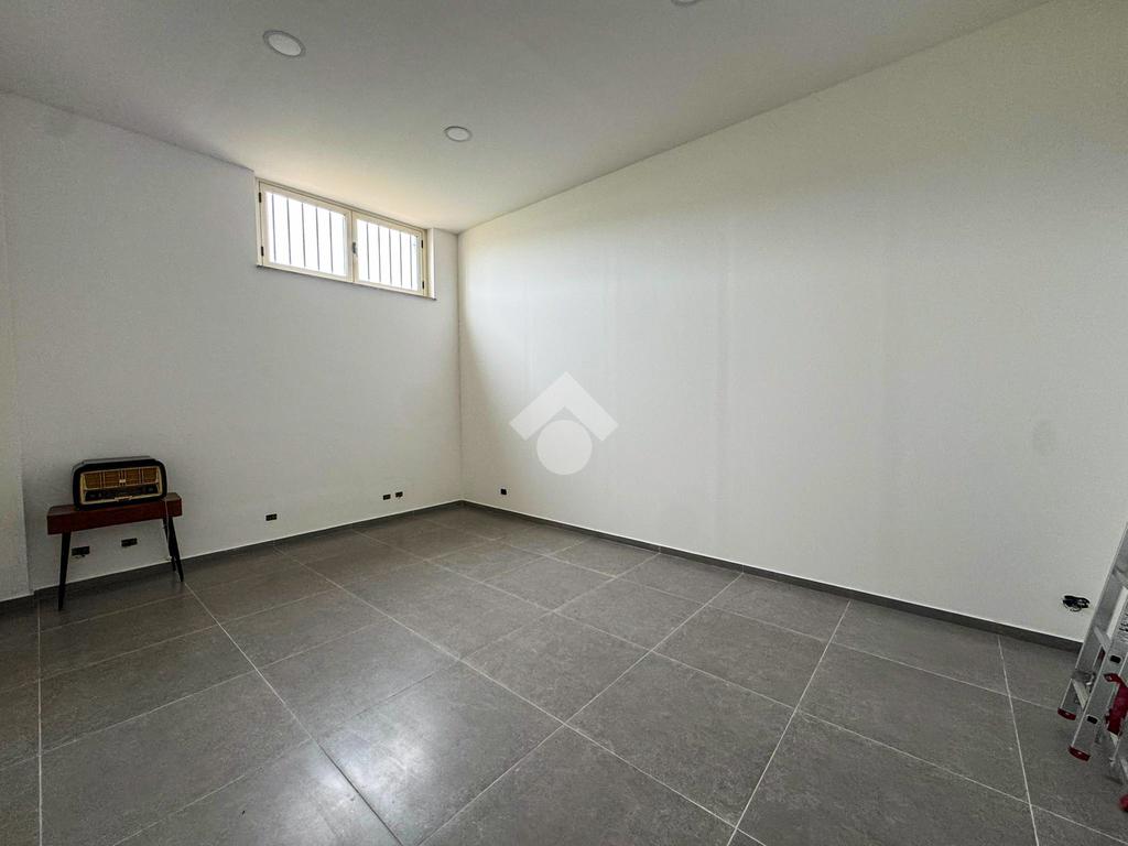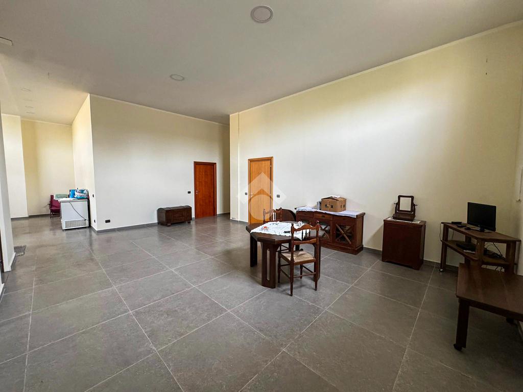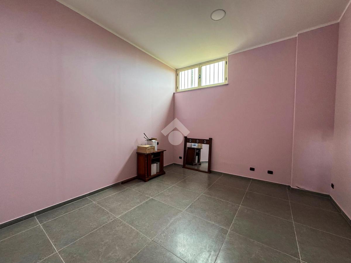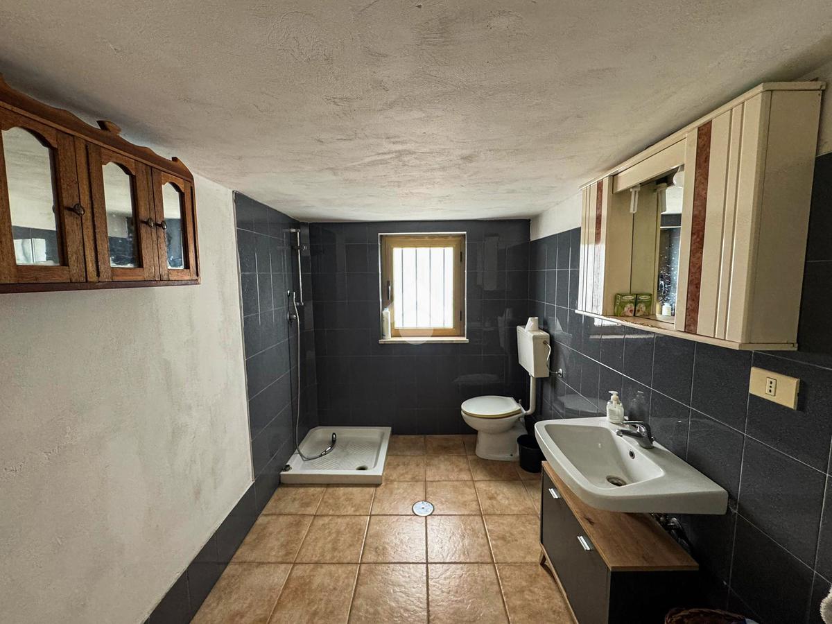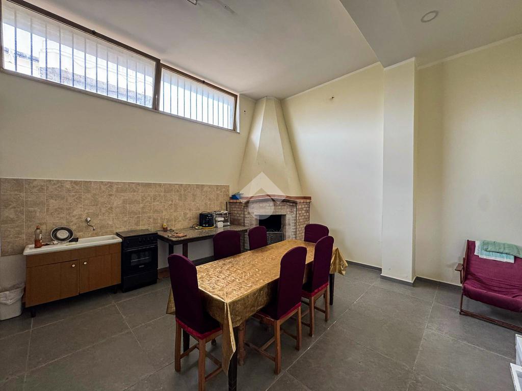Al piano terra, un ampio magazzino di 350 mq, classificato come laboratorio (Catasto C3), offre impianti idrico ed elettrico di recente installazione, oltre a un bagno funzionale.