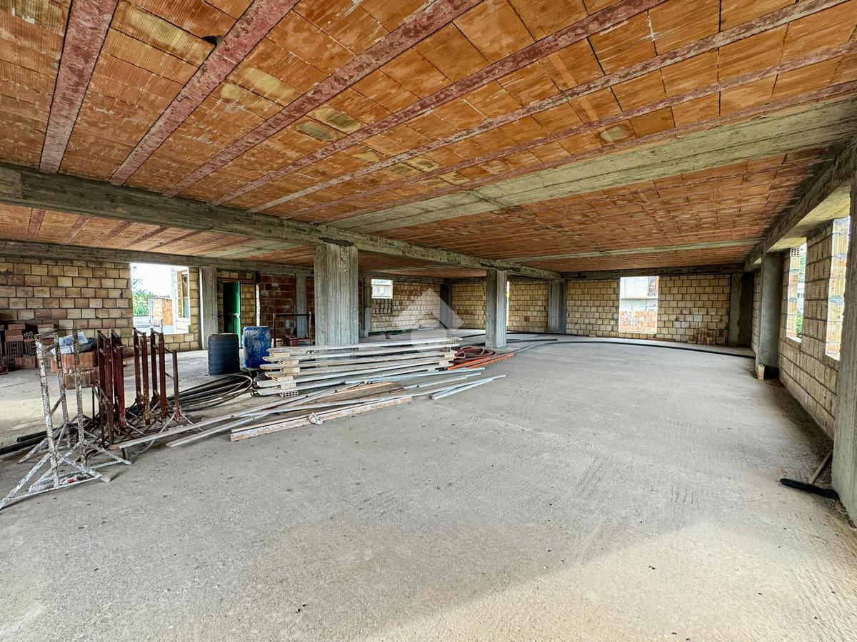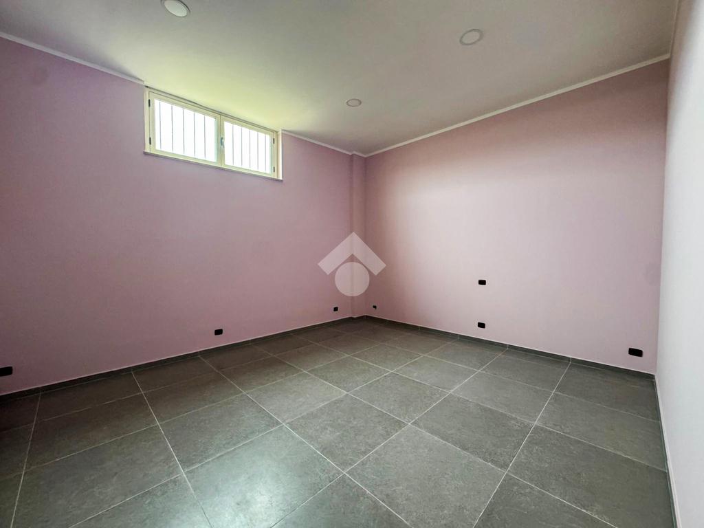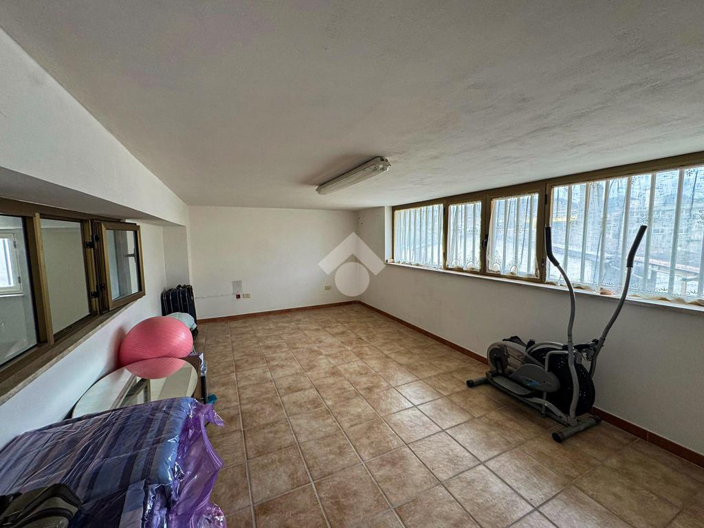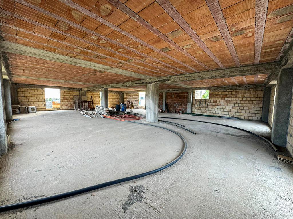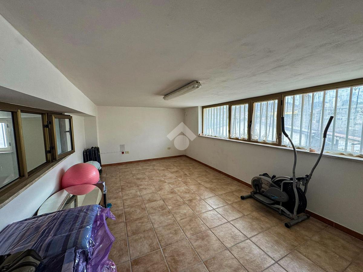 Al piano terra, un ampio magazzino di 350 mq, classificato come laboratorio (Catasto C3), offre impianti idrico ed elettrico di recente installazione, oltre a un bagno funzionale.