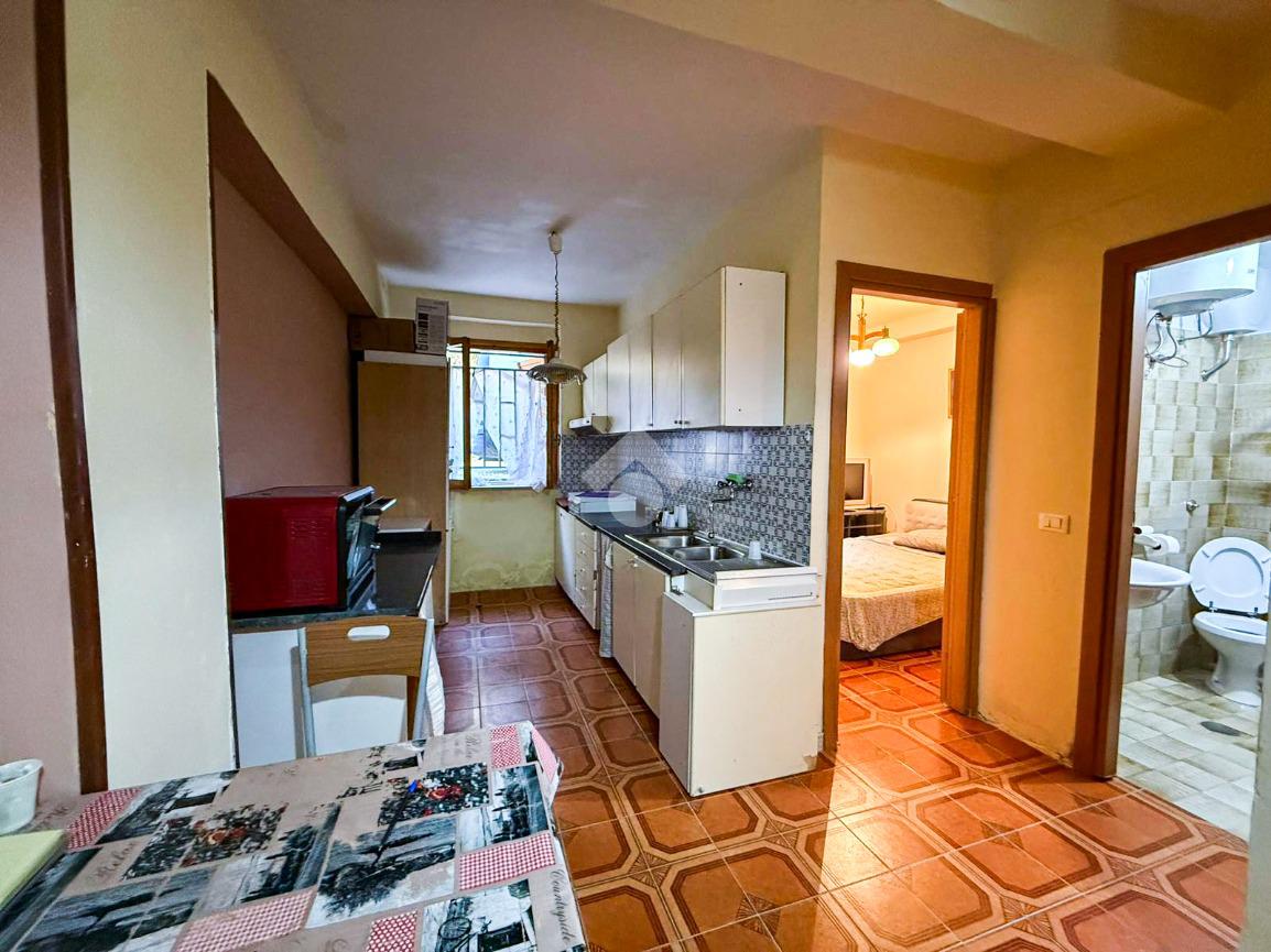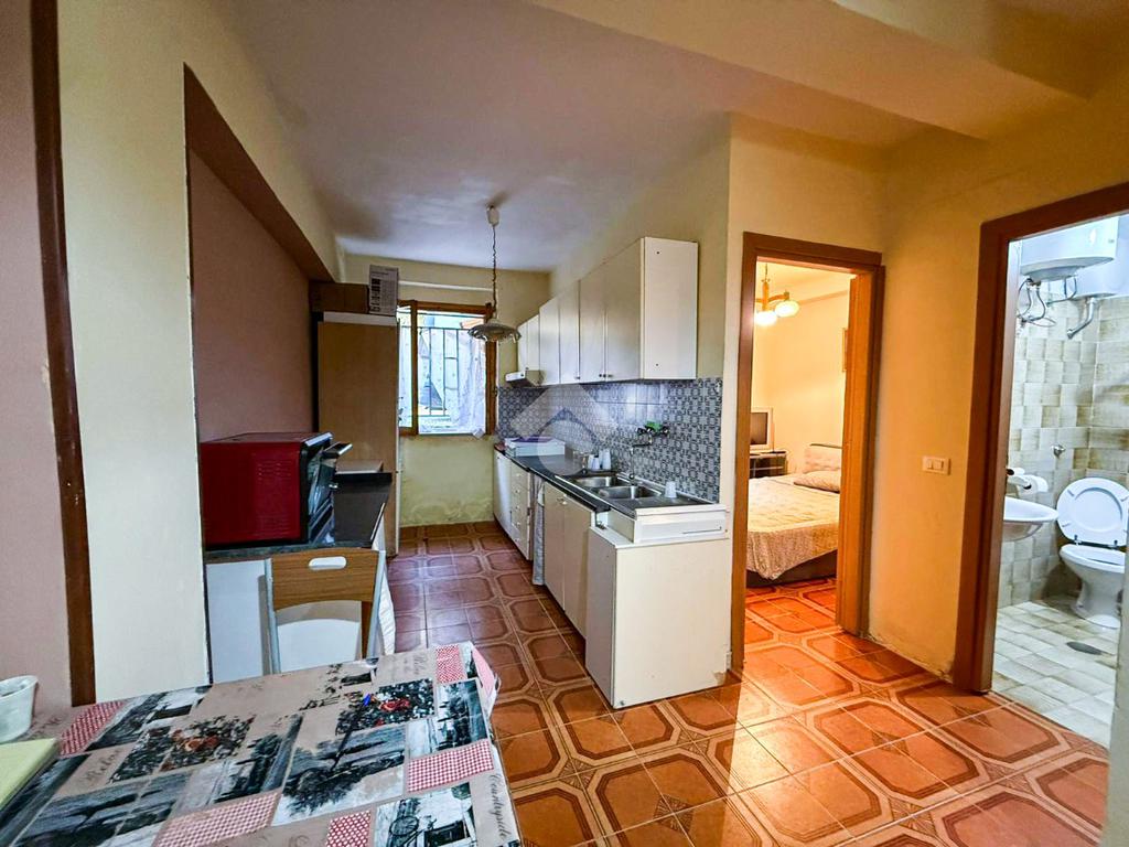 Situato al piano terra, l'immobile è composto da tre locali ben distribuiti. Entrando, si viene accolti da un soggiorno luminoso, perfetto per momenti di relax e convivialità. La cucina adiacente offre uno spazio pratico per preparare i pasti quotidiani.