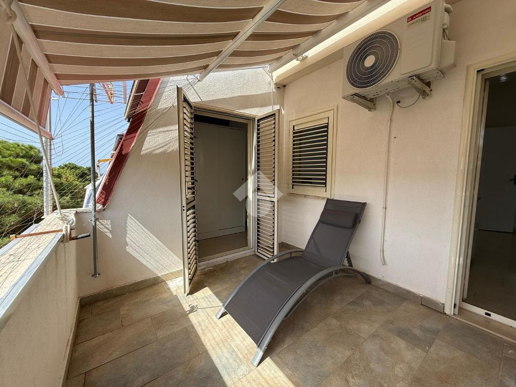 La mansarda si compone di due locali ben distribuiti: un luminoso soggiorno che si apre su un balcone, ideale per momenti di relax all'aperto, e una cucina pratica e ben organizzata.