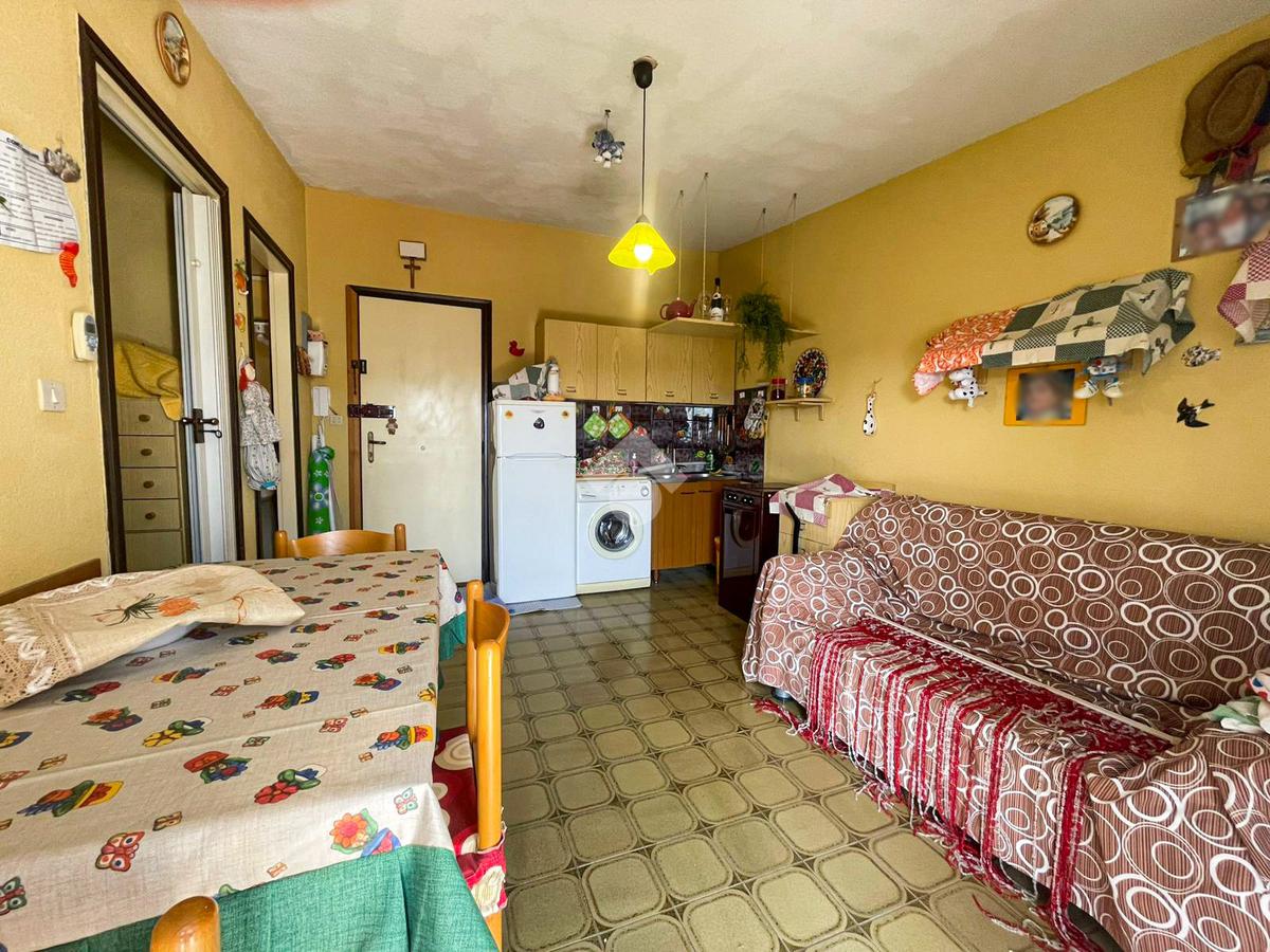 All'interno, un luminoso soggiorno con cucina open space accoglie gli ospiti, creando un'atmosfera conviviale e pratica. La camera da letto, separata, garantisce uno spazio riservato e confortevole per il riposo. Il bagno, ben progettato, completa la disposizione interna, offrendo comodità e praticità.